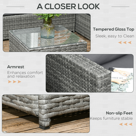 Outsunny 3pcs Rattan Corner Sofa Set Coffee Table Garden Furniture with Cushions