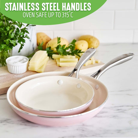 GreenLife Artizan 26cm & 20cm Frying Pan Set Ceramic Non-Stick (Pink)
