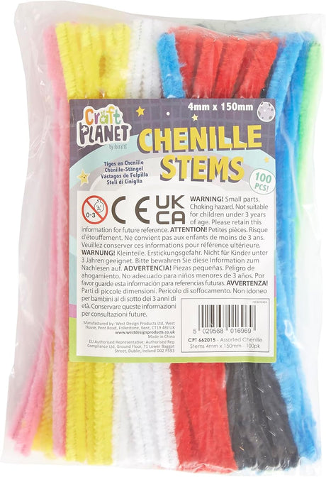 In stock (50 units)Regular price £7.49Unit price /UnavailableCraft Planet Chenille Stems 4mm x 150mm Assorted Colours (100pk)