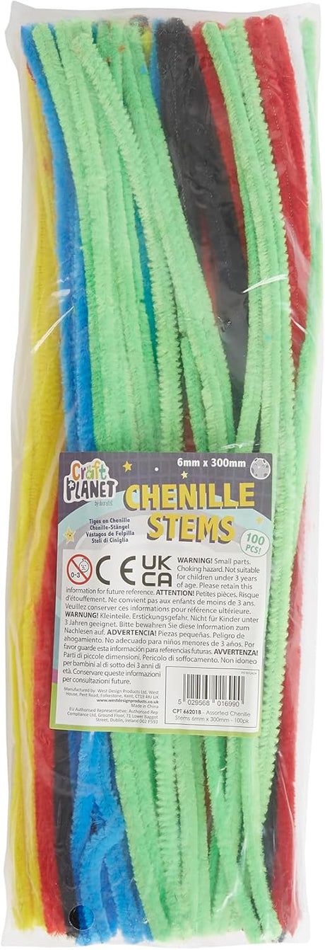 In stock (50 units)Regular price £17.99Unit price /UnavailableCraft Planet Chenille Stems 6mm x 300mm Assorted Colours (100pk)