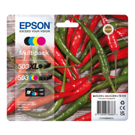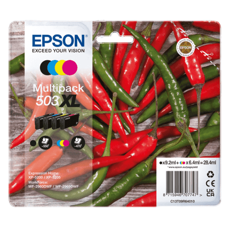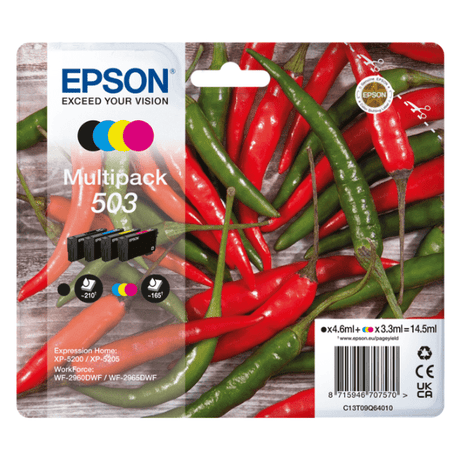 Regular price £75.49Unit price /UnavailableEpson 503 Chillies Black/Cyan/Magenta/Yellow High Capacity Ink Cartridge Multipack