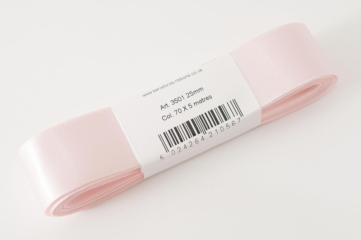 Berisfords Satin Ribbon Pack 5m x 25mm Pale Pink (4pc)