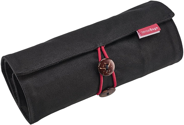 The practical Sensebag roll-up case is made from high-quality black coloured linen that is washable and hard wearing polyester fabric. Simply roll up your pens pencils and markers and have them with you at all times. You can place the roll-up pencil case flat on a table put your pens and pencils into the 18 red pencil loops and roll it up again. The roll-up pencil case can be closed flexibly depending on how thick your pens and pencils are with the help of the red elastic loops on both studs. If you like to roll up your pencils the Sensebag roll-up pencil case will be your constant companion everywhere you go wherever you want to roll-up your pens pencils and markers and have them with you. The 18 piece marker case comes with a Velcro fastener and an integrated outside pocket for easy transport and practicality.