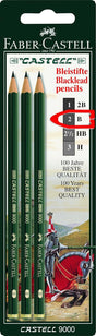 The Faber-Castell Graphite pencil 9000 is of high quality and it's finely graduated degrees of hardness have made it a firm favourite with artists and illustrators. Its lead is fully bonded with the wood surround and is therefore particularly break-resistant. The 9000 is available in 16 different degrees of hardness making it the ideal pencil for all technical and artistic applications.