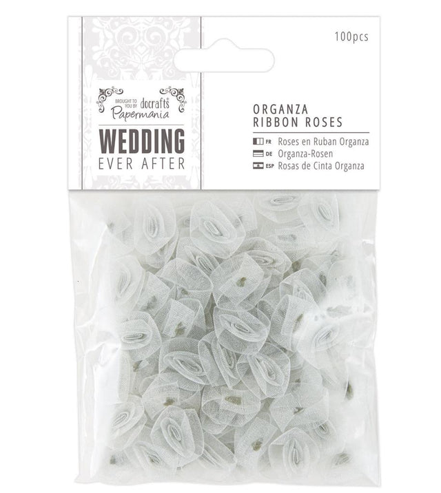 Papermania Wedding Ever After collection offers a wealth of personalisation to suit all your 'big day' stationery and decoration needs. This pretty pack of silver Organza Ribbon Roses contains 100 roses approximately 15mm diameter. Co-ordinates perfectly with the Wedding Ever After Ribbon Assortment Dispenser. Ideal for the DIY bride