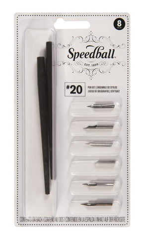 Speedball's No. 20 General Purpose Set is ideal for creating delicate fine lines and cross-hatching. The set fincludes Pointed pen nibs: #100 #102 #103 #104 #107 #108. Also includes (1) Standard Penholder and (1) Crowquill Penholder.