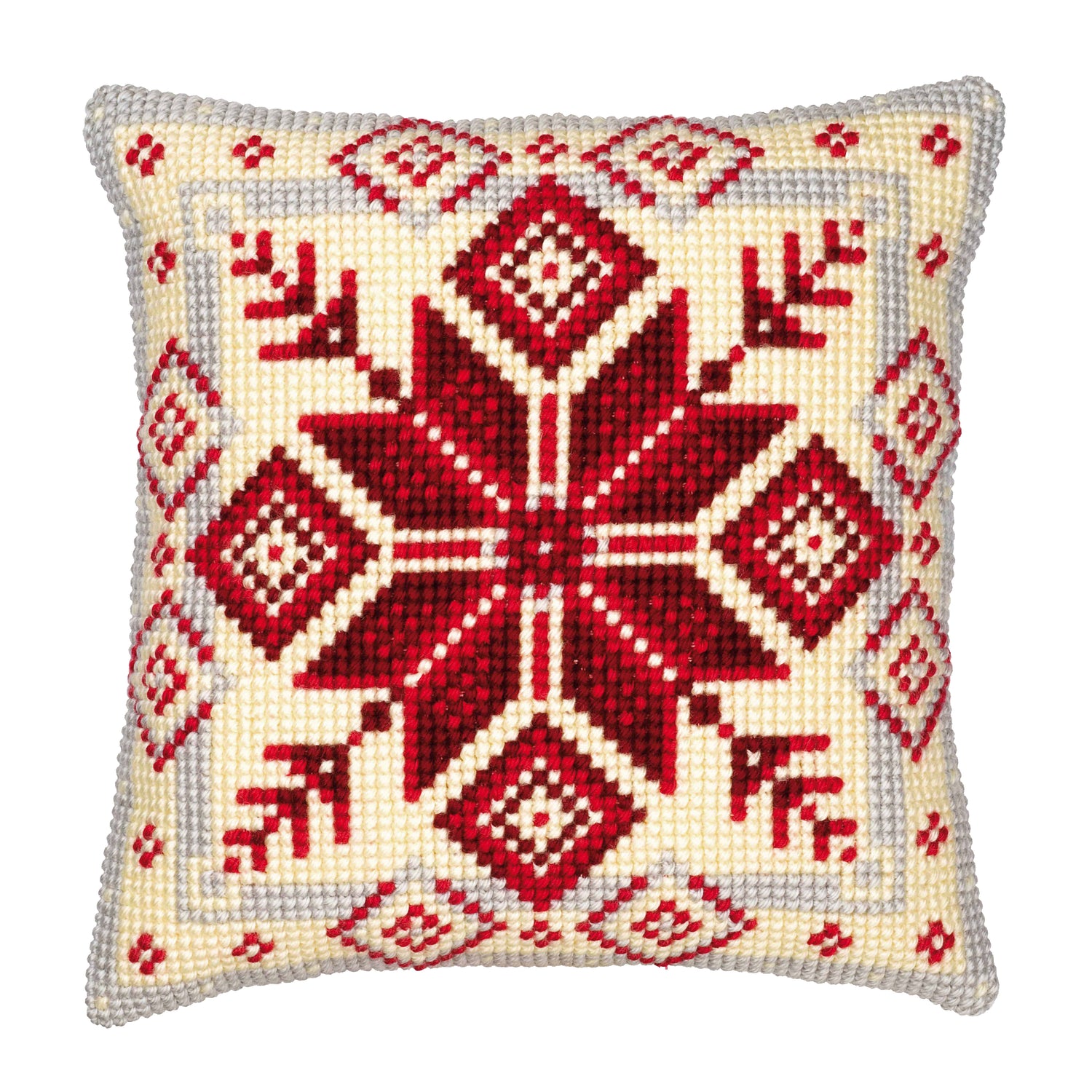 The Vervaco products are of high Belgian quality, The kit includes high quality material:, A hand painted large hole canvas of 100% cotton, (canvas: 18 holes/10 cm - 4,5 stitches/inch), thick yarn of 100% acrylic, clear working instructions in eight languages, a suitable embroidery needle, an "I Stitch by Vervaco" DIY-label, a large full-colour finished model picture, and a coloured diagram. The kit doesn't include the pad or back. 40 x 40 cm / 16" x 16", Age category: from 6 years, Stitches: cross stitch, Number of colours: 13, Difficulty: Very easy,