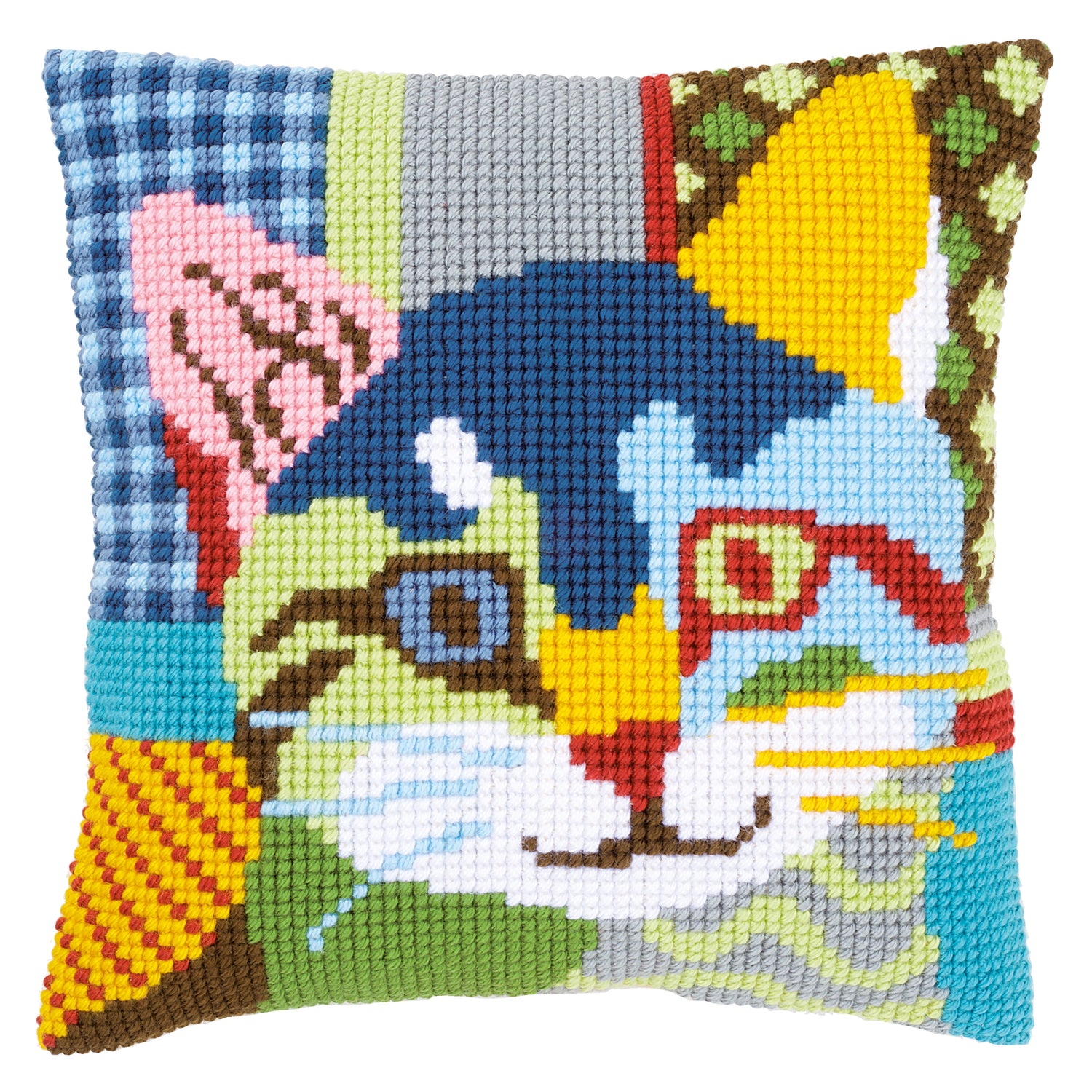 The Vervaco products are of high Belgian quality, The kit includes high quality material:, A hand painted large hole canvas of 100% cotton, (canvas: 18 holes/10 cm - 4,5 stitches/inch), thick yarn of 100% acrylic, clear working instructions in eight languages, a suitable embroidery needle, an "I Stitch by Vervaco" DIY-label, a large full-colour finished model picture, and a coloured diagram. The kit doesn't include the pad or back. 40 x 40 cm / 16" x 16", Age category: from 6 years, Stitches: cross stitch, Number of colours: 13, Difficulty: Very easy,