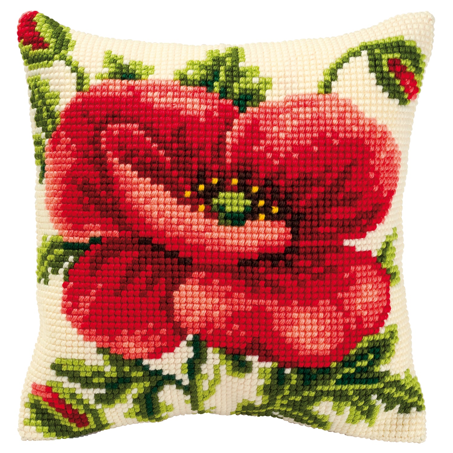 Vervaco Cross Stitch Kit 40cm Cushion Cover - Oriental Poppy