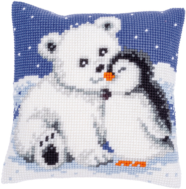 Vervaco Cross Stitch Kit 40cm Cushion Cover - Polar Bear and Penguin