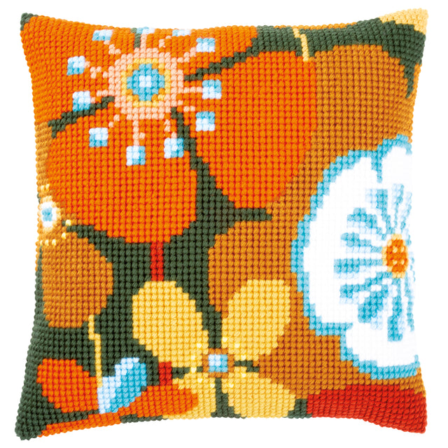 Vervaco Cross Stitch Kit 40cm Cushion Cover - Retro Flowers